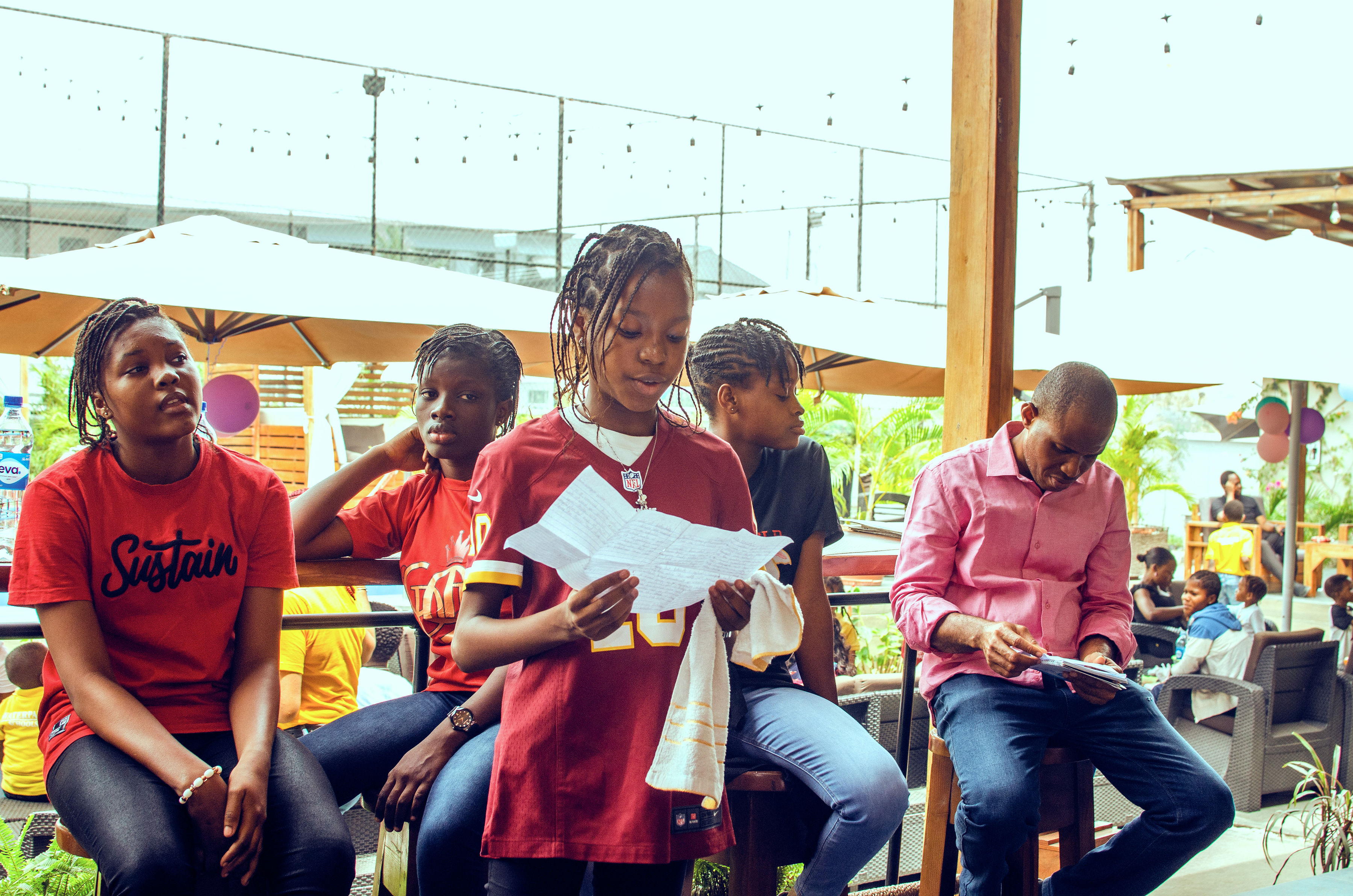 Food and drinks were served, starting with some plantain (dodo), yam chips, French fries, and chicken. Later, they had some jollof rice too. To round it off, they each had a muffin and a scoop of ice cream for dessert before going home. While some of the younger children chose to explore the facilities and play, the older ones chilled and chatted among themselves. It was a lovely ambiance and a beautiful occasion.